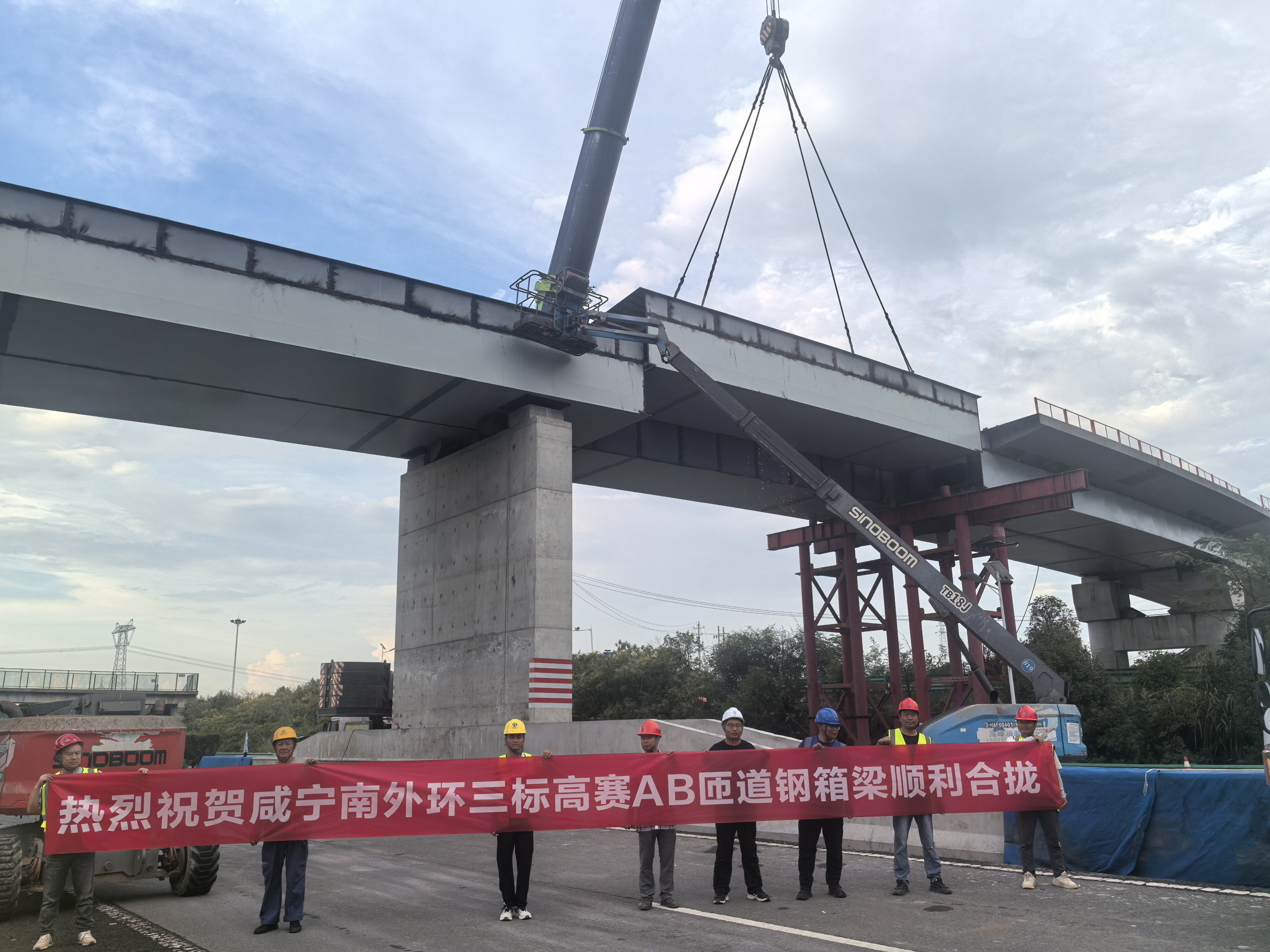 9月11日,隨著最后一節(jié)鋼箱梁精準(zhǔn)就位,由興達(dá)公司承建的咸寧南外環(huán)高賽樞紐互通A、B匝道橋鋼箱梁架設(shè)圓滿完成。